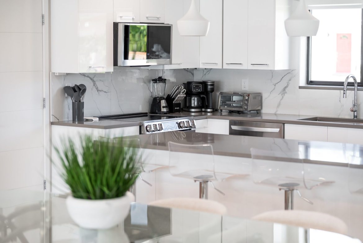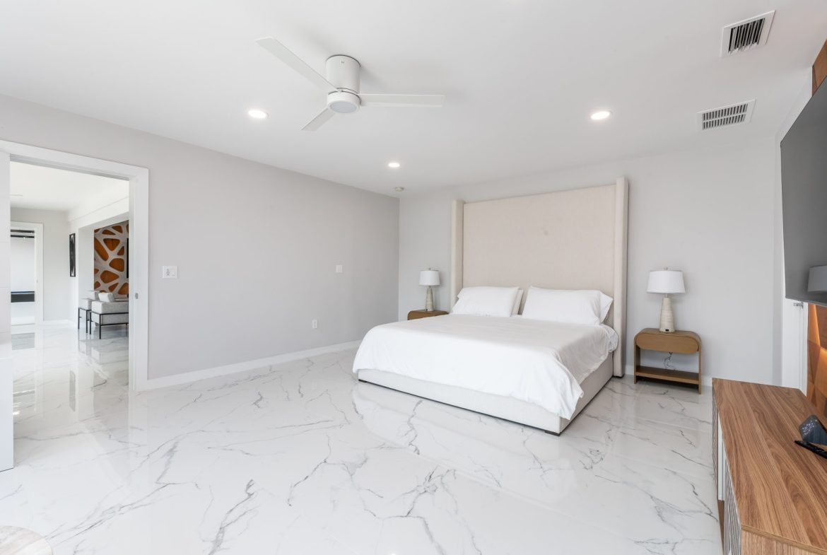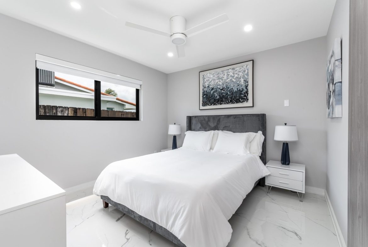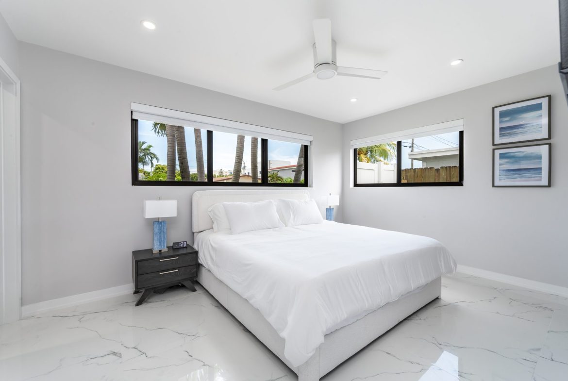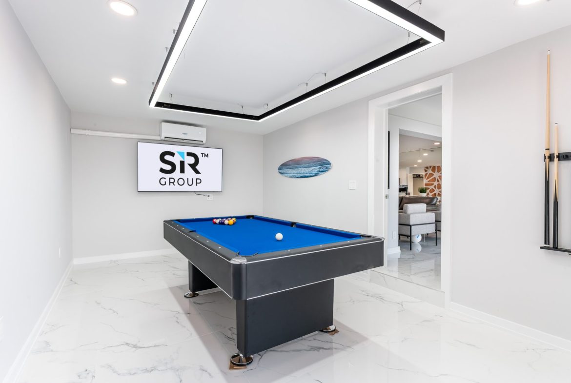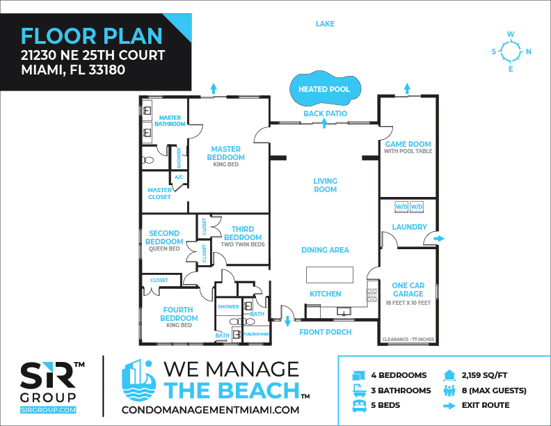 Tranquility meets modern! Waterfront stunner with views and a backyard that will make you never want to leave! Super spacious 4 bedroom, 3 bathroom residence with a game room featuring 2159 interior sq/ft plus a 1 car garage. Incredible modern kitchen with a huge serving island with barstools backed with amazing water views. Kitchen is fully equipped for all your cooking needs. Master bedroom features a king bed, large custom walk in closet, and a modern bathroom with dual sinks. The front bedroom can function as a second, smaller master bedroom with an on suite bathroom and queen bed. The third bedroom features a queen bed and the hallway bedroom features 2 twin beds.