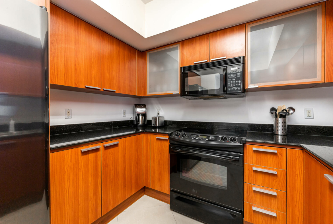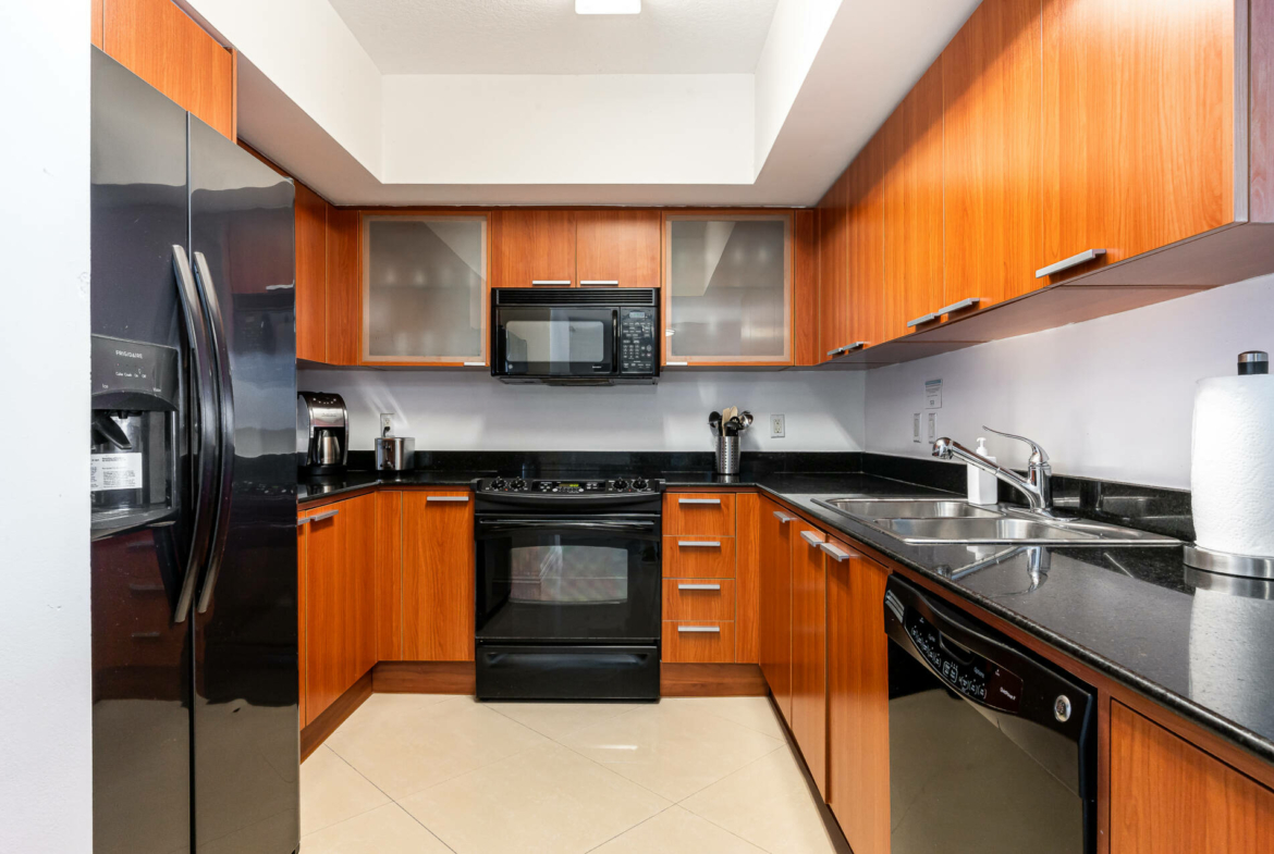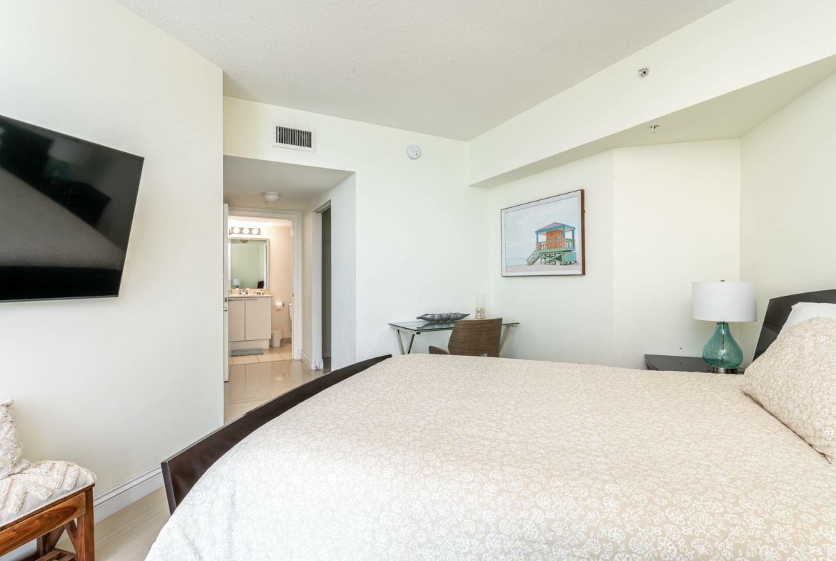 Spectacular ocean views from this 27th floor residence! Spacious 2 bedroom with a den and 2.5 bathrooms. Fully equipped kitchen for all your cooking needs with granite countertops. Master bedroom has amazing ocean views, a king bed, a 65″ smart TV, & a private balcony. Master bath has dual sinks, walk in shower, & soaking tub. Second bedroom also has an on suite bathroom, ocean views, a queen bed, a 55″ smart TV, & a private balcony. Den has no door – queen bed.