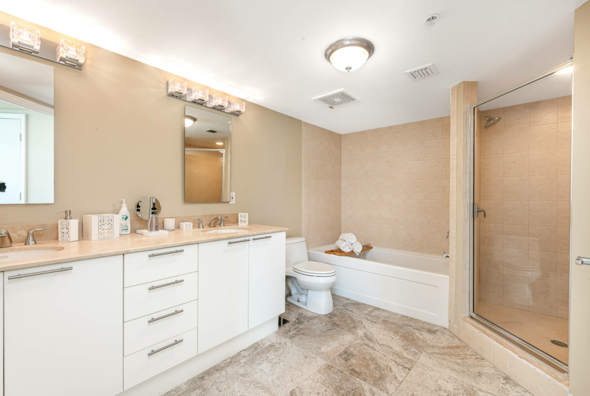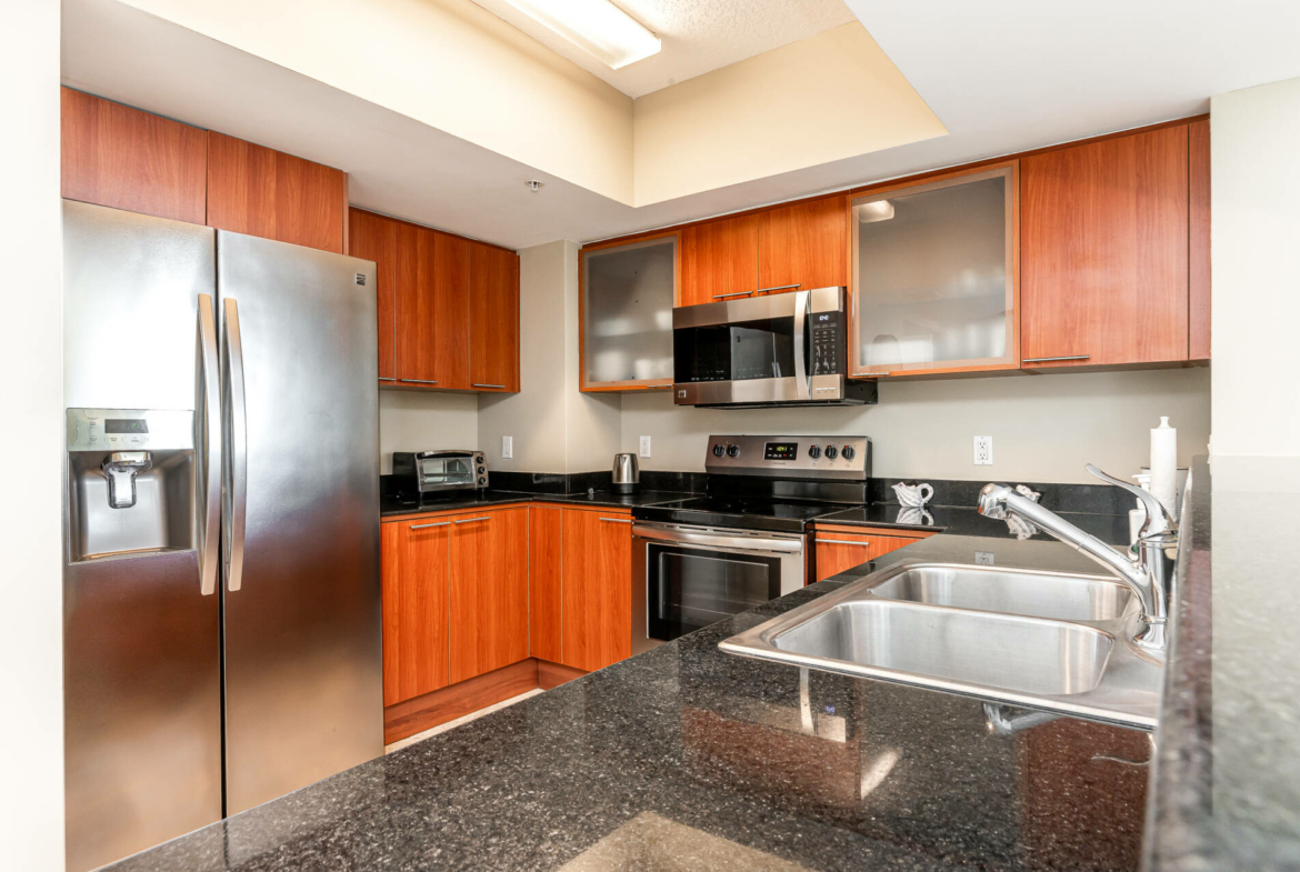 Exquisite high floor 1 bedroom residence with unreal ocean & city views! Very spacious layout with 1000 sq/ft plus 2 private balconies. The kitchen features stainless steel appliances, granite countertops, & is fully equipped for all your cooking needs. Master bedroom offers a king bed, cable TV, walk in closet, and on suite bathroom. Workspace, WiFi, & washer/dryer in the unit. Valet parking space included.