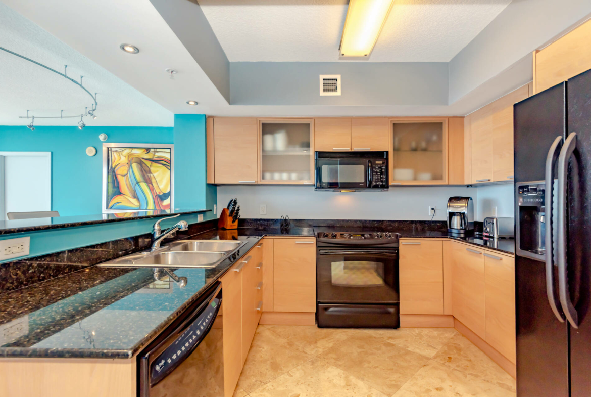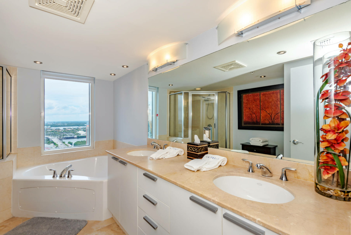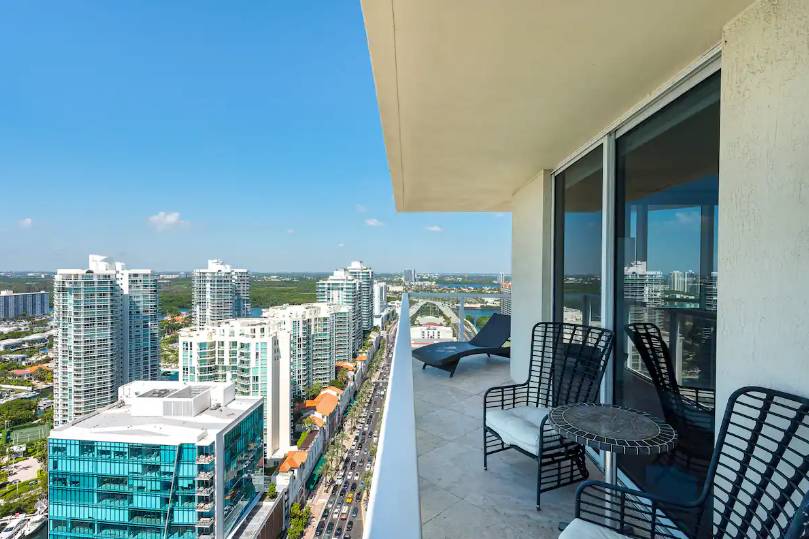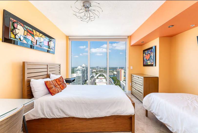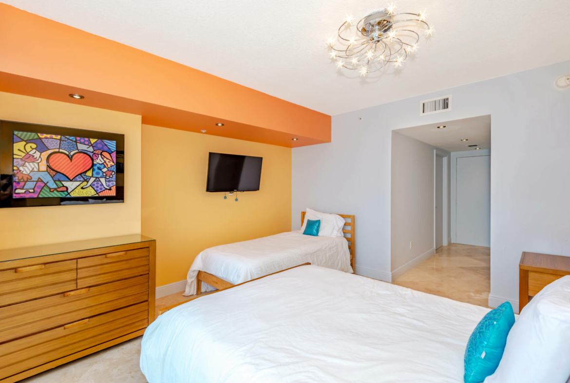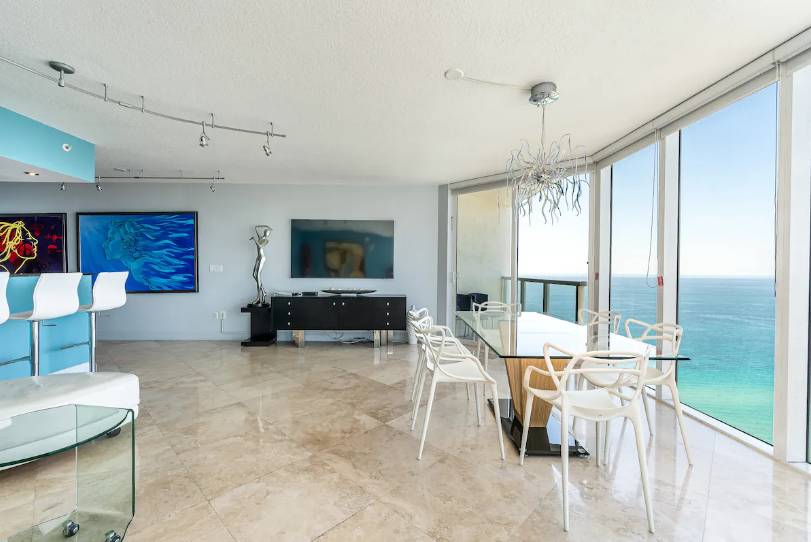 Designer decorated, fully furnished modern corner oceanfront residence. Come relax & unwind with sunrise ocean views & a wraparound terrace that offers amazing sunset views. Floor to ceiling windows throughout truly make this spacious 1423 sq/ft apartment have a very open feel. Marble tile, granite kitchen, brand new A/C unit, & custom LED lighting. Endless ocean, intracoastal, & downtown Miami views – at night it’s surreal! Towels, linens, and kitchen cooking equipment are all provided.