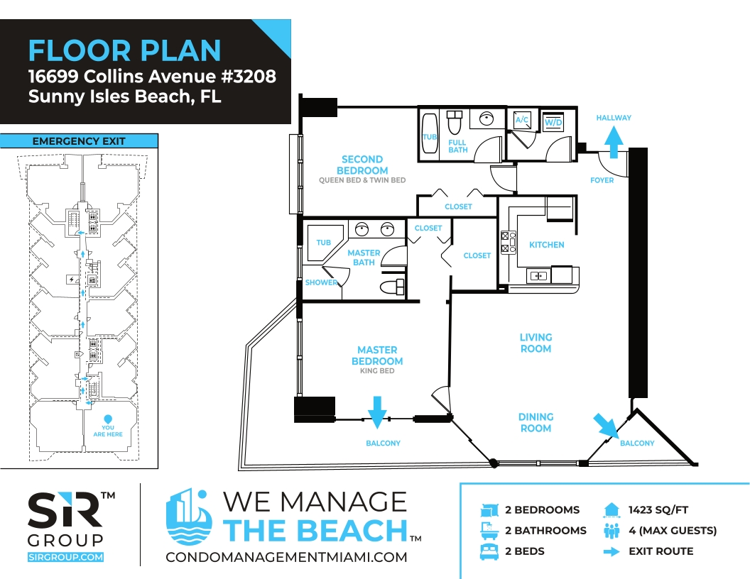 The best views in Sunny Isles! Northeast corner at La Perla provides direct ocean front and city views. Massive terrace offers great outdoor space and you can hear the waves from the balcony. The master bedroom has a king bed with access to the balcony and ocean views. The master bathroom features a large walk in shower and also a tub. Bathroom is on-suite to the bedroom. The 2nd bedroom has a queen bed with access to the balcony and ocean views. The second bathroom is on-suite to the bedroom and features a tub/shower combo. There is a half bathroom/powder room located in the living room. Washer/dryer in the apartment for all your washing needs. Linens and towels are provided. However, we do not provide soap, shampoo, or laundry/dishwasher detergent.